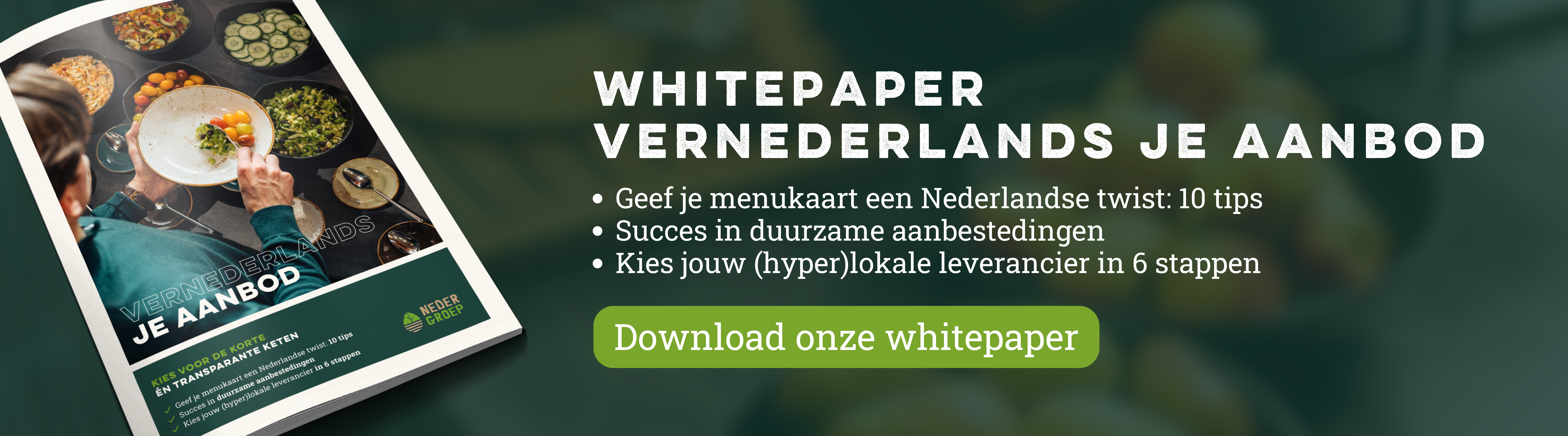 Het is beter voor de wereld én je wint er (meer) gasten én opdrachten mee. Dus waarom zou je jouw aanbod niet vernederlandsen? Het laat zien dat jij als foodprofessional serieus bezig bent met het klimaat. Met producten van Hollandse bodem stoot je minder CO₂ uit, weet je waar je ingrediënten vandaan komen en bespaar je geld. Want lokaal betekent ook minder kilometers en bijkomende transportkosten. Ontdek 10 tips om je menukaart een Nederlandse twist te geven.